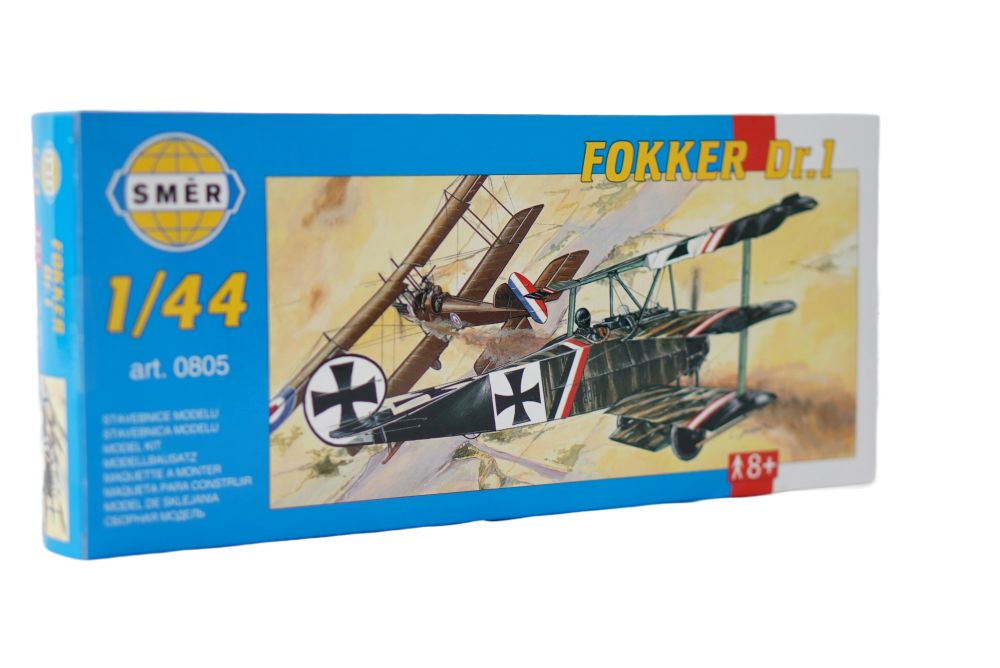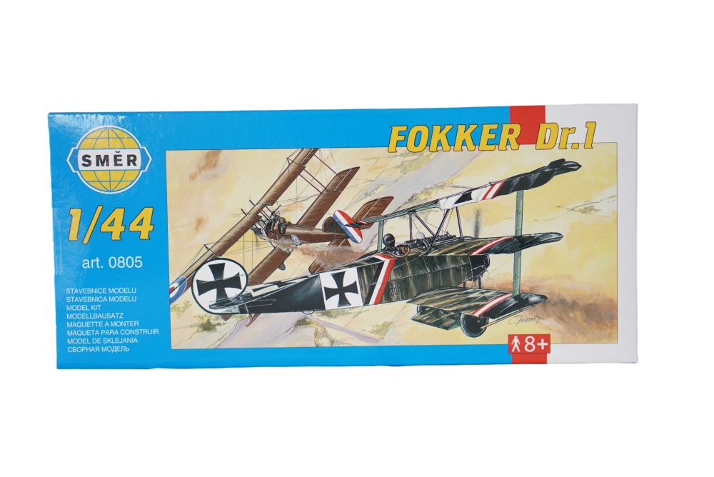 Stavebnice Směr - Fokker Dr.1 je oblíbený model letadla z období 1. světové války. Stavebnice obsahuje stručnou historii modelu, doporučené barvy dle typu letadla, samolepky s popisem rozmístění, návod na sestavení a technický popis reálného modelu. Lepidlo a barvy nejsou součástí balení.