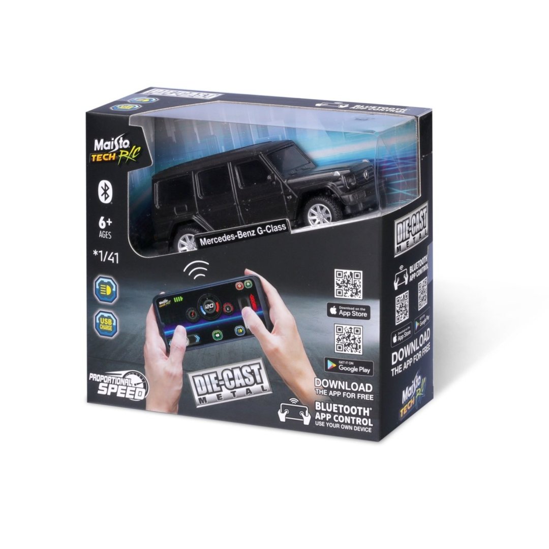 Zažijte budoucnost RC s Maisto mini kovovým RC modelem Mercedes-Benz G-Class se světly, ovládaným přes Bluetooth.EAN: 090159 061694