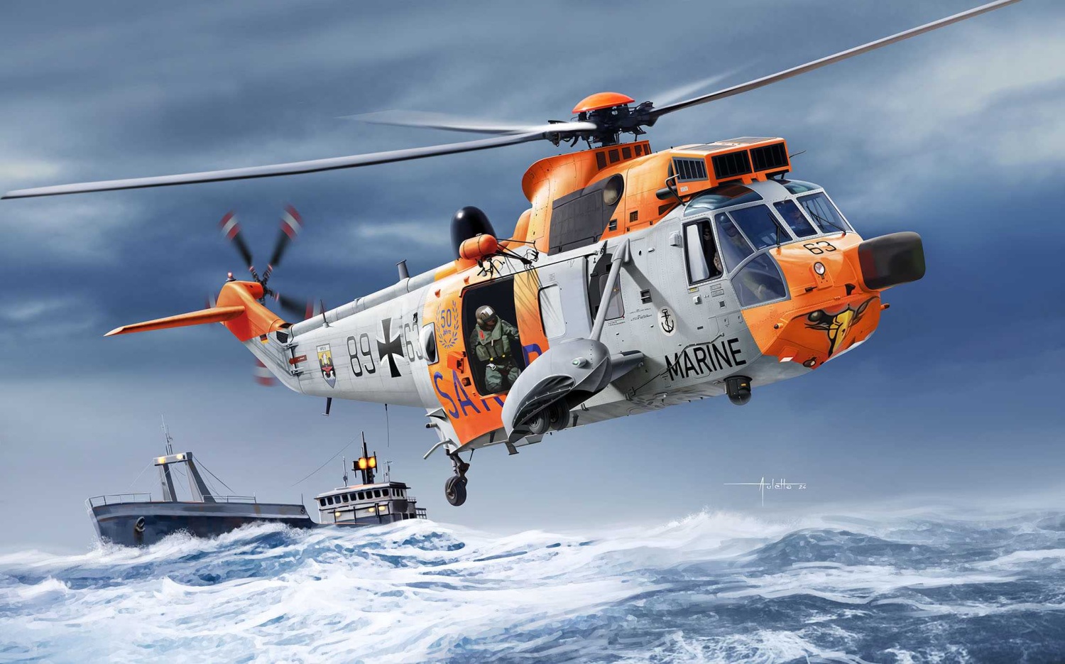 Promyšlená konstrukce umožňuje bezproblémovou montáž. Díky přesnému lícování jednotlivých dílů vzniká krok za krokem působivý model tohoto legendárního námořního vrtulníku.